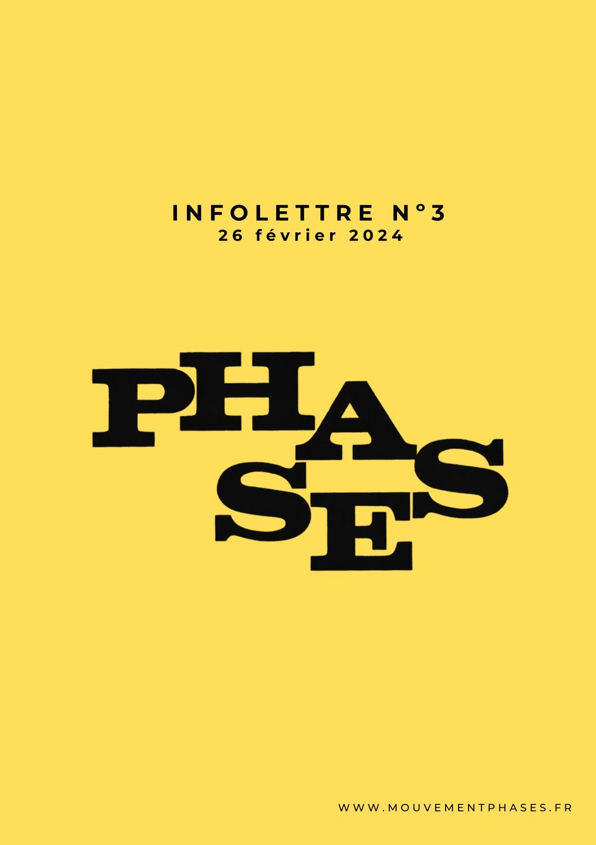 Les premières infolettres avaient pour fonction de sensibiliser amis et chercheurs qui s’intéressent au mouvement Phases, à Édouard et Simone Jaguer, à la création du site web qui leur est consacré et que l’on peut consulter depuis le 17 avril 2024, date à laquelle il a été officiellement présenté à la Bibliothèque Kandinsky au Centre Georges-Pompidou à Paris, et rendu accessible à quiconque désire le consulter.