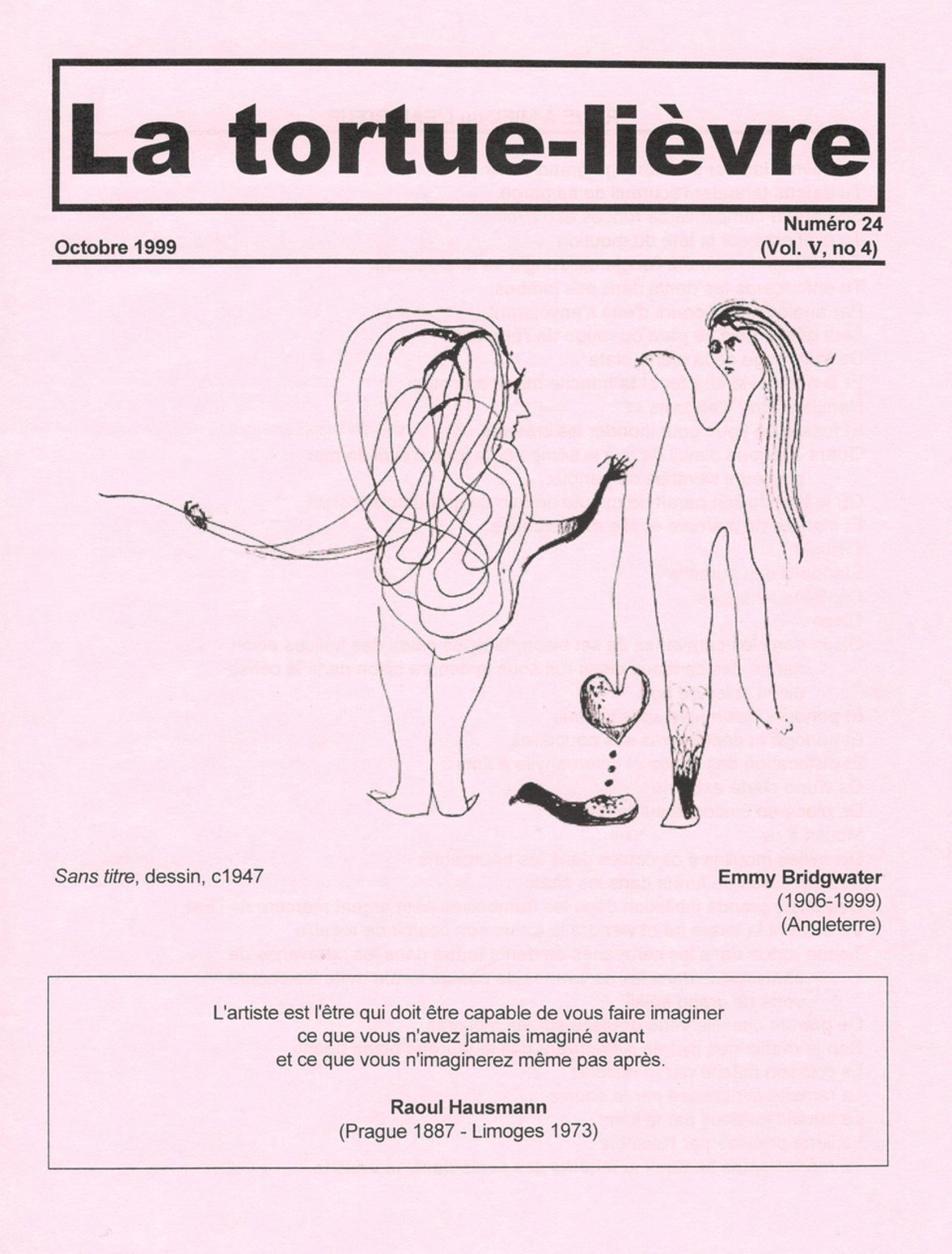 Textes et images: Richard Anders, Emmy Bridgwater, Camille Bryen, Henriette De Champrel, Ulysse Comtois, Artur Cruzeiro Seixas, Jean-Noël Dompnier, Abdul Kader El Janabi, Joaquin Ferrer, Amirah Gazel, Raoul Hausmann, Maurice Henry, Max Hölzer, Édouard Jaguer, Robert Lagarde, Gérard Legrand, Mayo, E.L.T. Mesens, Ladislav Novak, Gilles Petitclerc, Tony Pusey, Michel Remy, Rikki & Tristan Tzara